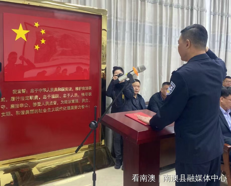 县人大常委会主任林钢塔代表县人大常委会向倪海成同志颁发任命书。倪海成在全体常委会组成人员见证下,进行了庄严的宪法宣誓。