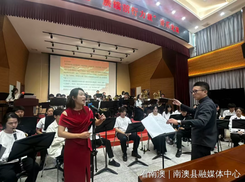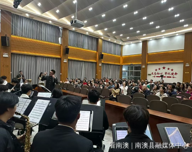 此次党课活动,是汕头大学艺术教育中心响应“双百行动”号召首次走进南澳。艺术教育中心交响管乐团师生以“音乐 + 党课”“解读 + 演绎”模式,为在场观众带来一场兼具思想性与观赏性的音乐鉴赏。《在太行山上》《黄河大合唱》《钢铁洪流进行曲》等经典曲目,生动再现中国共产党光辉历史,让现场观众沉浸式感受红色文化的魅力,音乐党课在全场合唱《我的祖国》中圆满结束。