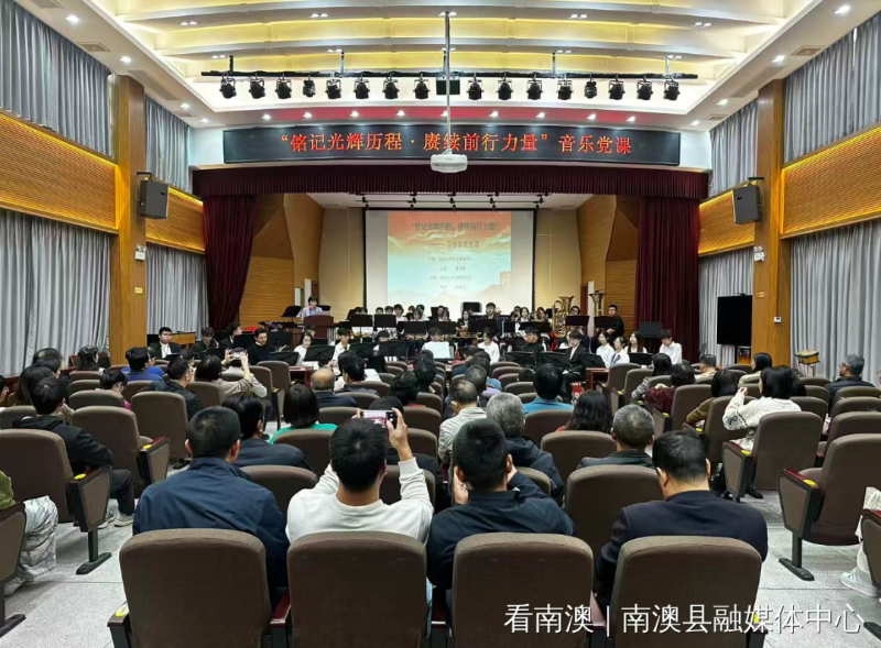 11月29日下午,由南澳县政协、“双百行动”驻南澳县服务队、南澳县教育局、汕头大学艺术教育中心联合主办的“铭记光辉历程・赓续前行力量”音乐党课在南澳县青少年宫举行。县政协、汕头大学、县委组织部、县委宣传部、县教育局有关负责人,县政协委员、机关同志及县教育系统教师思政课、音乐课教师代表共100多人参加活动。