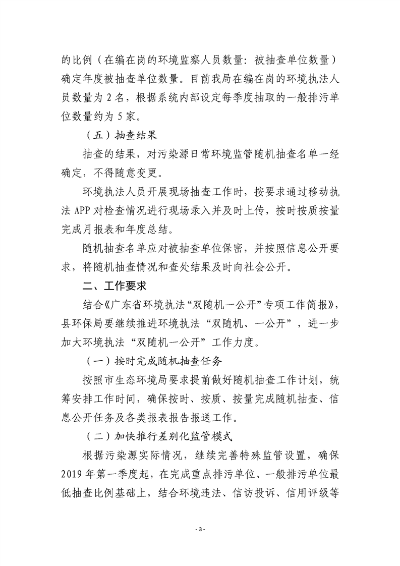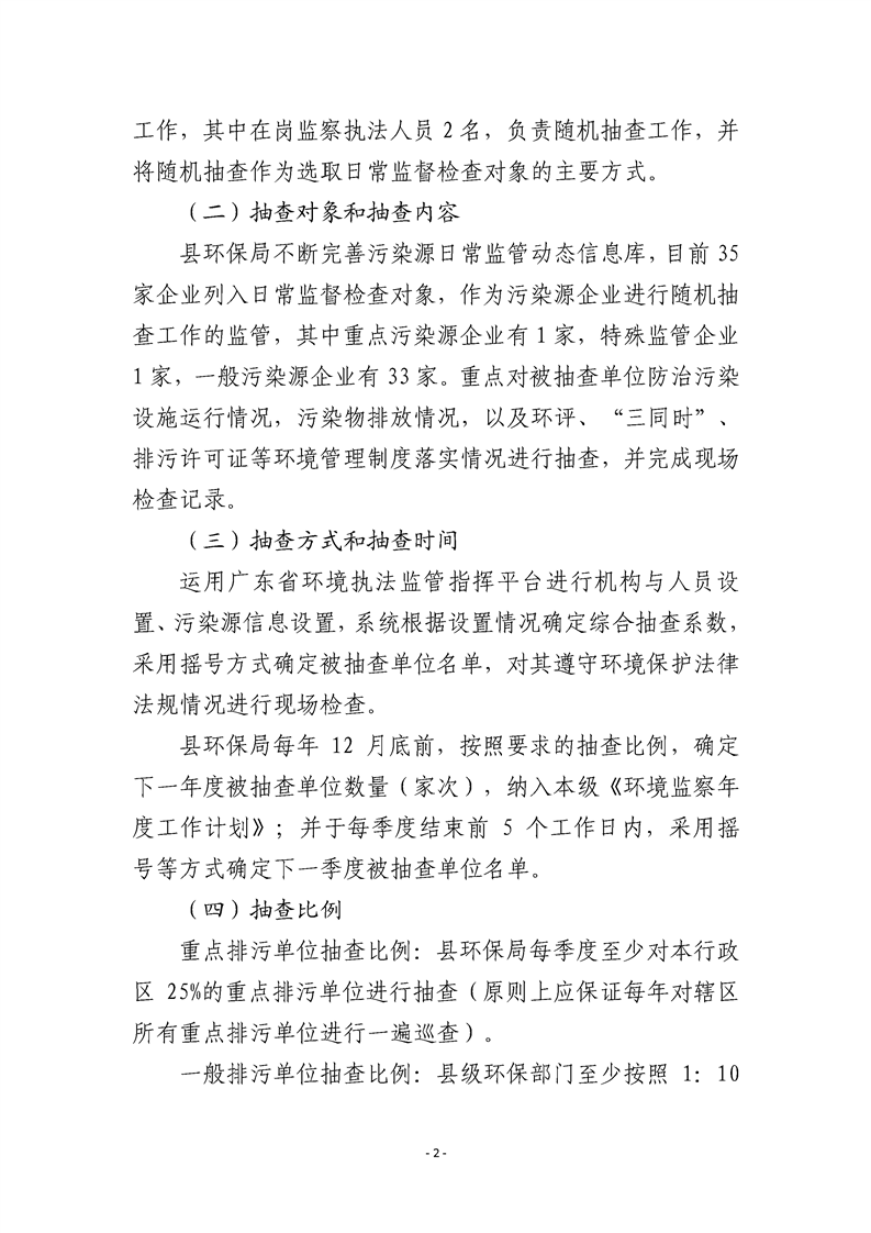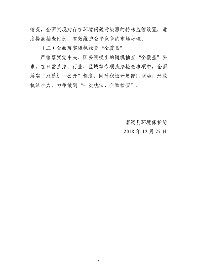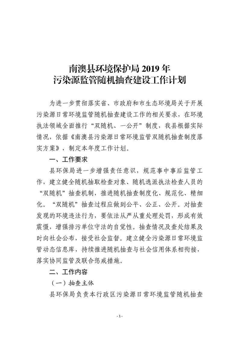 南澳县环境保护局2019年污染源监管随机抽查建设工作计划