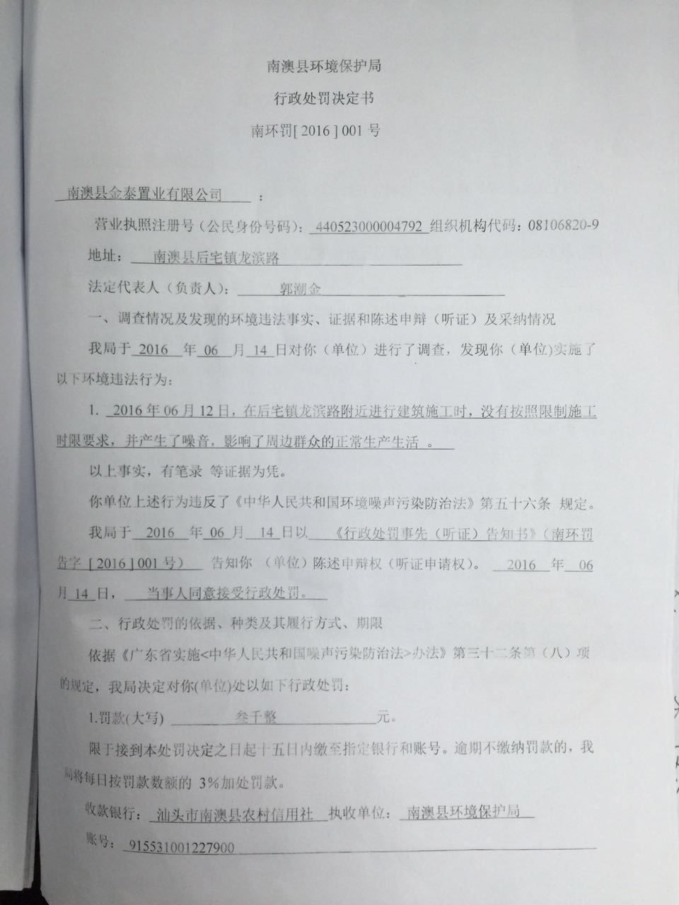 2016年行政处罚决定书