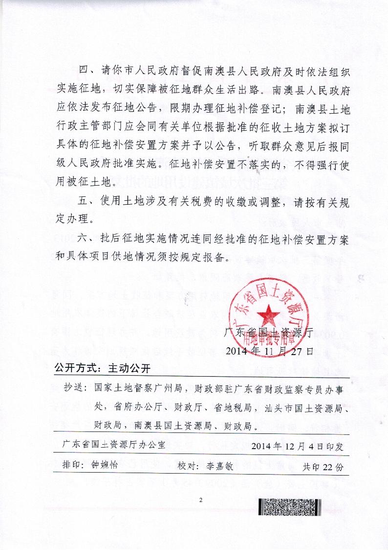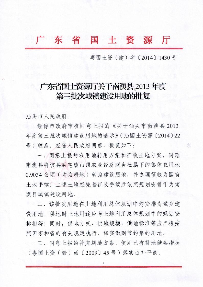 南澳县2013年第三批次城镇建设用地征地批准信息