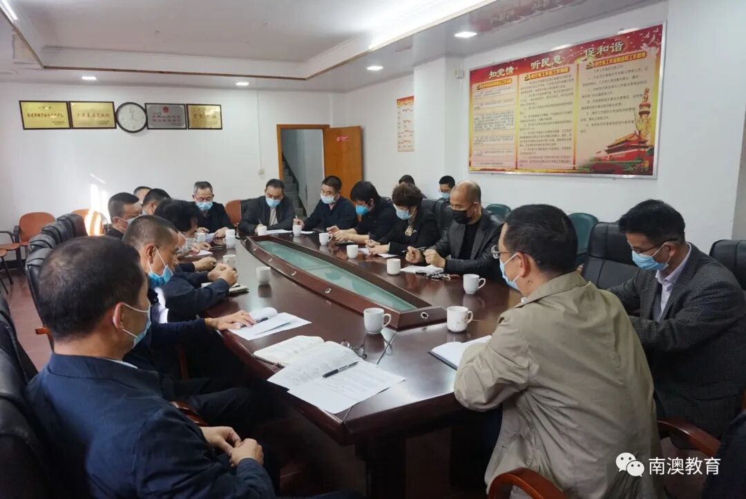 2月28日下午,南澳县教育局召开疫情防控工作领导小组第三次工作会议,传达28日上午省、市中小学线上教育工作部署视频会议精神,部署南澳县中小学“线上教育”有关工作。南澳县教育局班子成员、疫情防控领导小组成员,全县各中小学校长参加了会议。