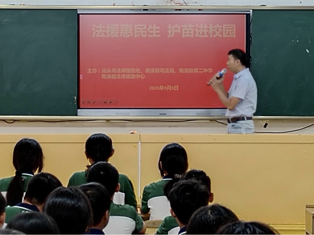 为进一步加强青少年法治教育,提升在校学生的法律意识和自我保护能力,营造“学法、懂法、守法、用法”的法治校园氛围,9月8日,南澳县法律援助中心走进南澳县第二中学开展“法援惠民生