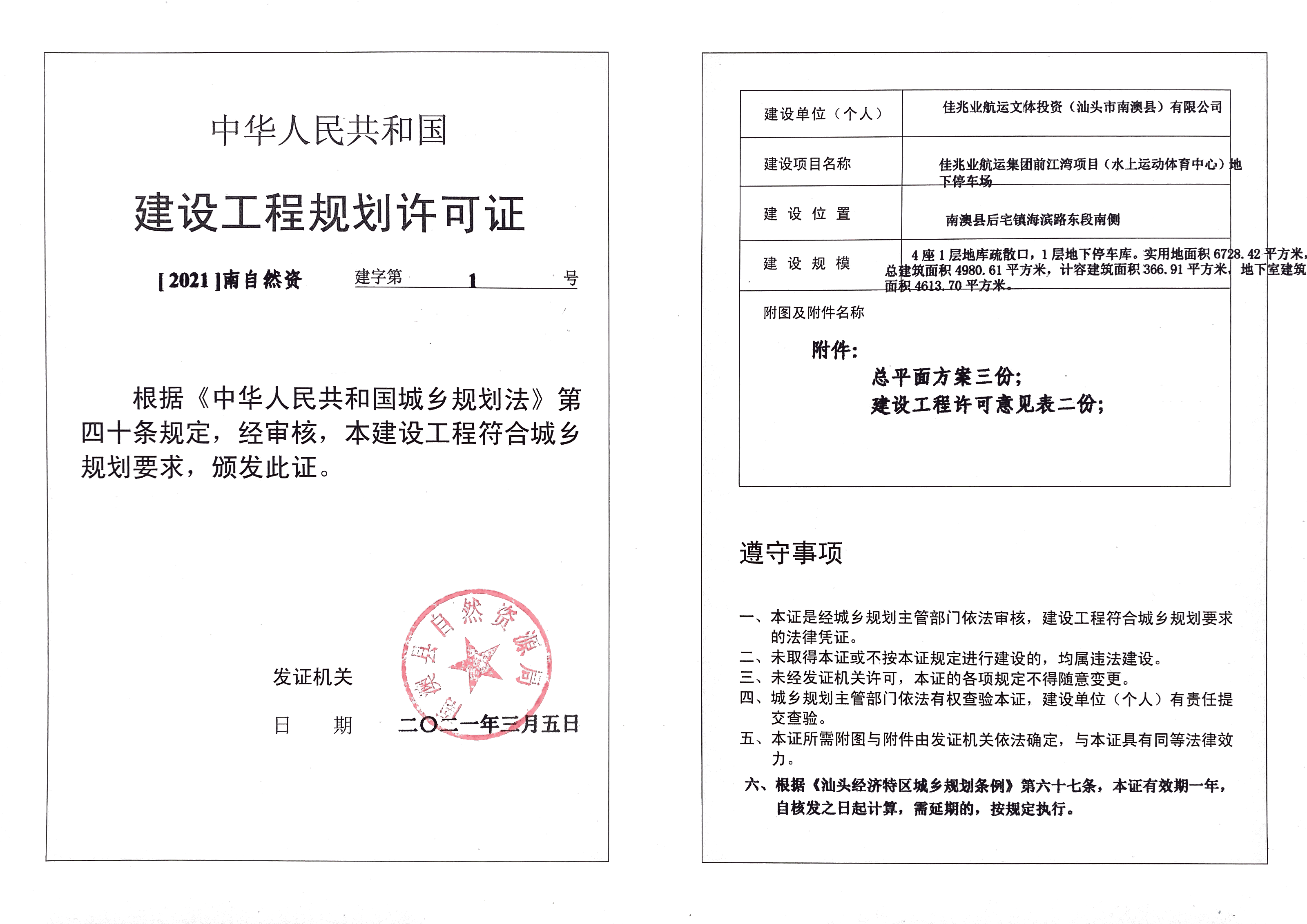 建设单位(个人):佳兆业航运文体投资(汕头市南澳县)有限公司