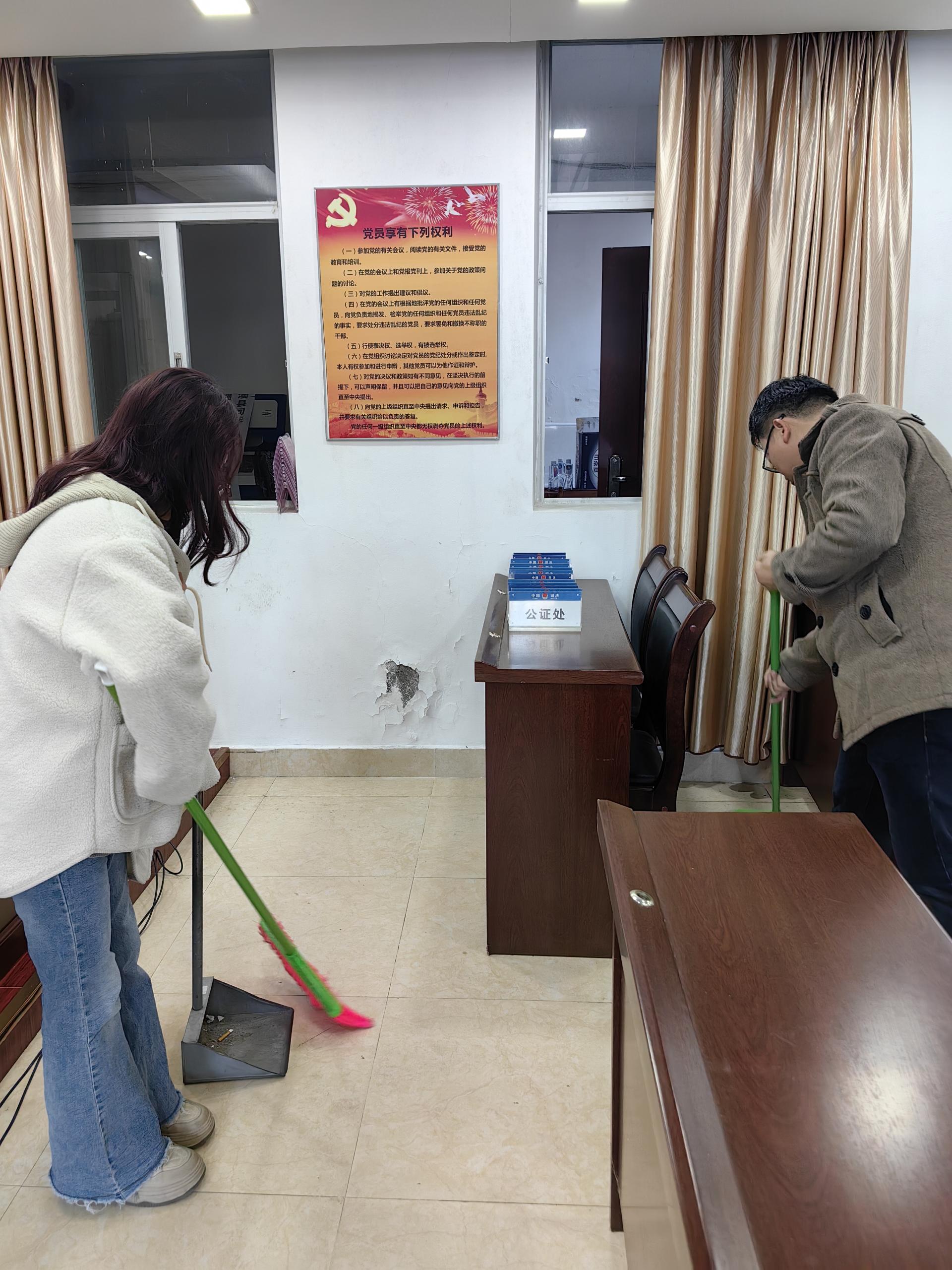 为深化爱国卫生运动,营造整洁有序、祥和文明的新春佳节氛围,进一步改善办公环境、强化干部职工环境卫生意识,2月11日下午4:30,县司法局组织全体干部职工开展卫生清洁活动,以实际行动辞旧迎新,打造干净舒心的办公环境。