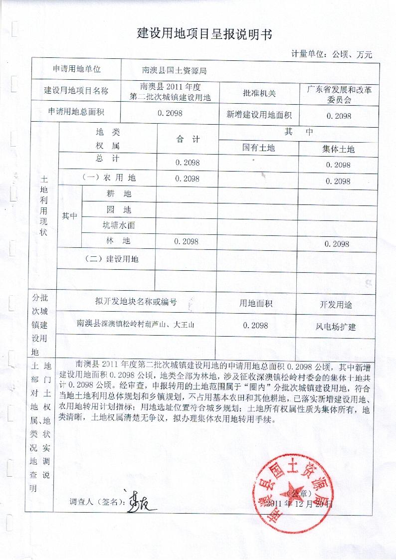 南澳县2011年度第二批次城镇建设用地